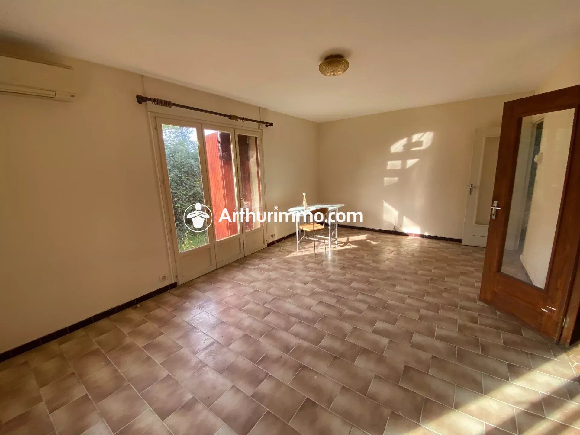 Elle nécessite des travaux de remise au goût du jour mais son vaste terrain et son prix attractif sont de vrais atouts pour en faire un logement très agréable avec une base saine : Elle comprend une entrée avec placards, un wc, un couloir, cuisine, séjour, 3 chambres ( dont une climatisée ), salle de bain.~Garage avec coin chaufferie - Second garage - Jardin - Assainissement individuel à revoir - Chauffage central fioul et climatisation réversible ( séjour et une chambre )